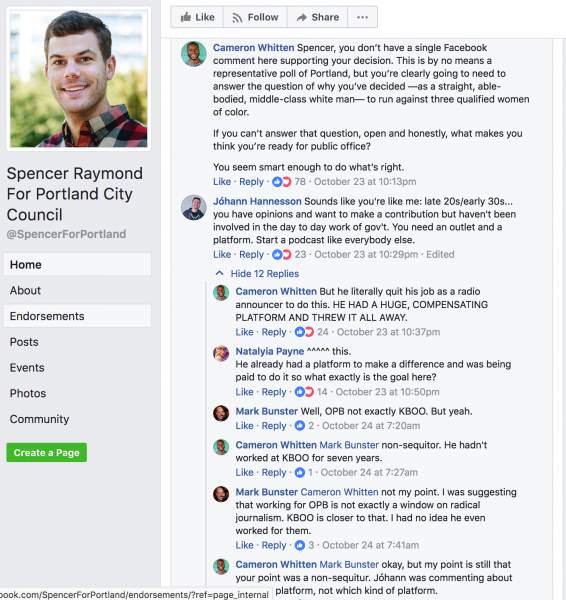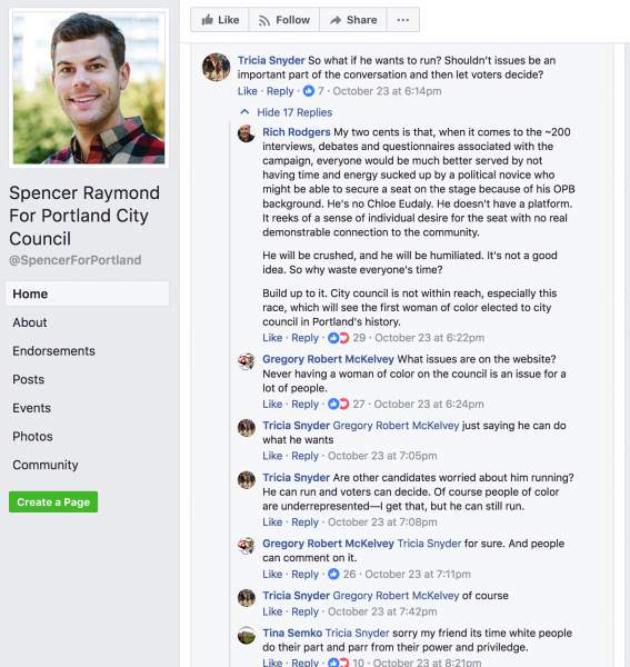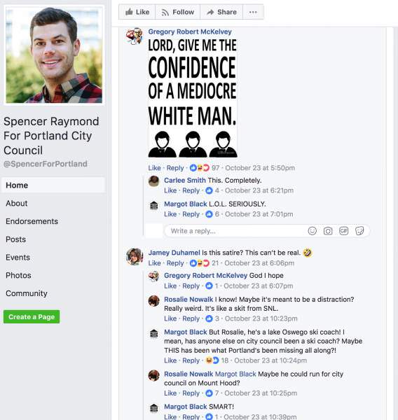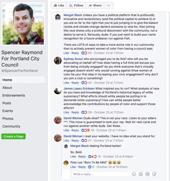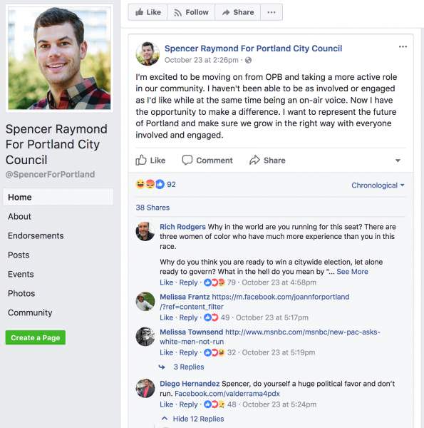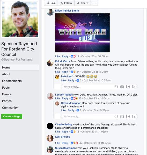 In Portland (of course), newly announced city council candidate Spencer Raymond has faced a wave of backlash throughout the community for daring to run for a seat that already features three “women of color” candidates, as long-time city councilman/person/they Dan Saltzman announced he will not run for another term.