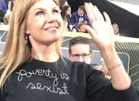 Case in point: At the Golden Globes on Sunday, liberal actress, singer and producer Connie Britton wore a shirt that said “poverty is sexist,” which of course won her much praise from leftists and feminists alike.