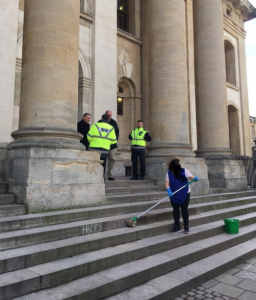 Last week, political theory professor Sophie Smith of Oxford University tweeted a photo of a female custodian scrubbing the words “Happy International Women’s Day” off the Clarendon steps on the university’s campus. Along with the picture, Smith wrote, “Oxford security makes a woman cleaner scrub out ‘Happy International Women’s Day’ on the Clarendon steps. What an image for [International Women’s Day], @UniofOxford.”